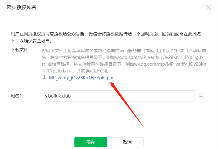 4、公眾號需要配置網(wǎng)頁授權域名 s.bolink.club(下載圖中文件發(fā)給支付平臺人員進行配置)